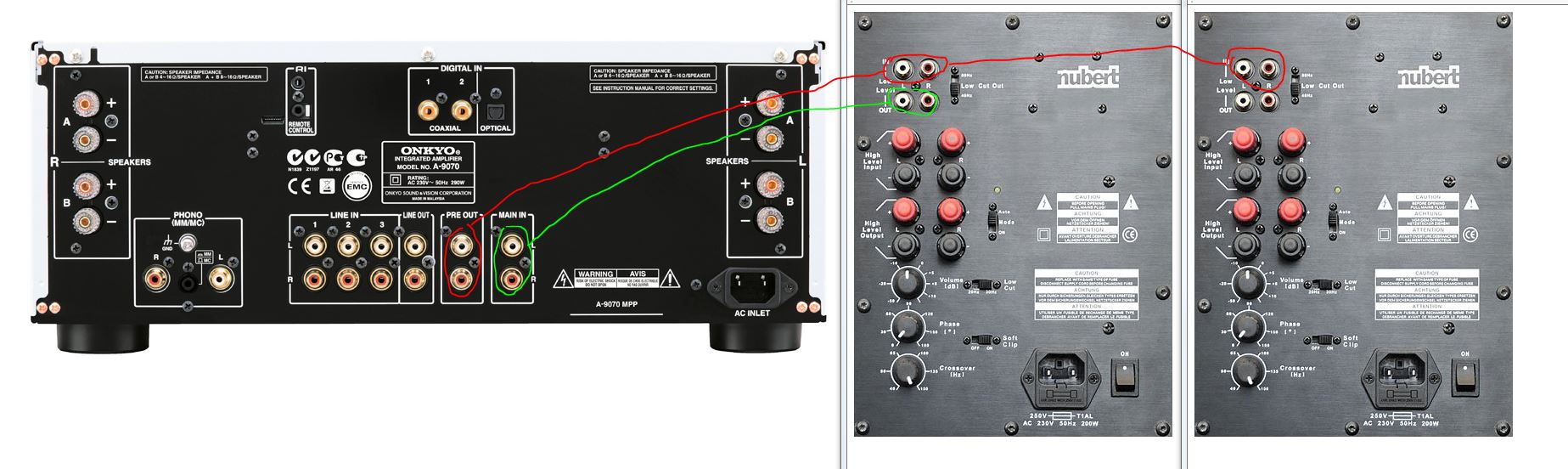 Re: 2 AW 443 an Vollverstärker Onkyo 9070 anschliessen