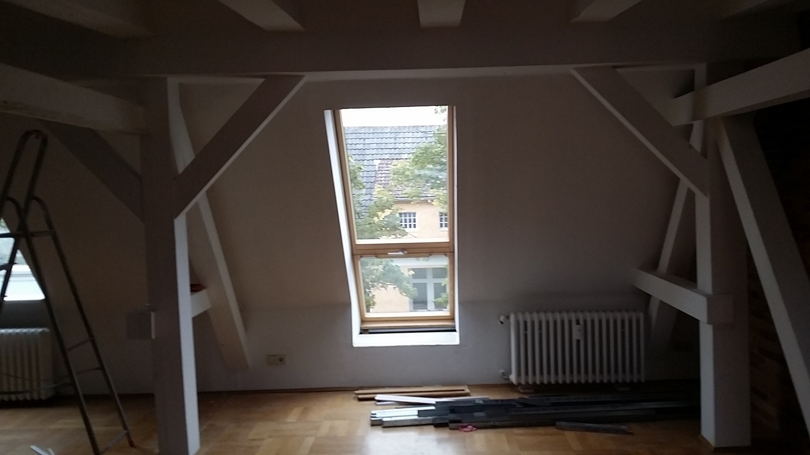Die gesammte Decke über den Balken soll abgehangen werden(Spitzdach s.Bilder) und ebenfalls mit Steinwolle befüllt werden.