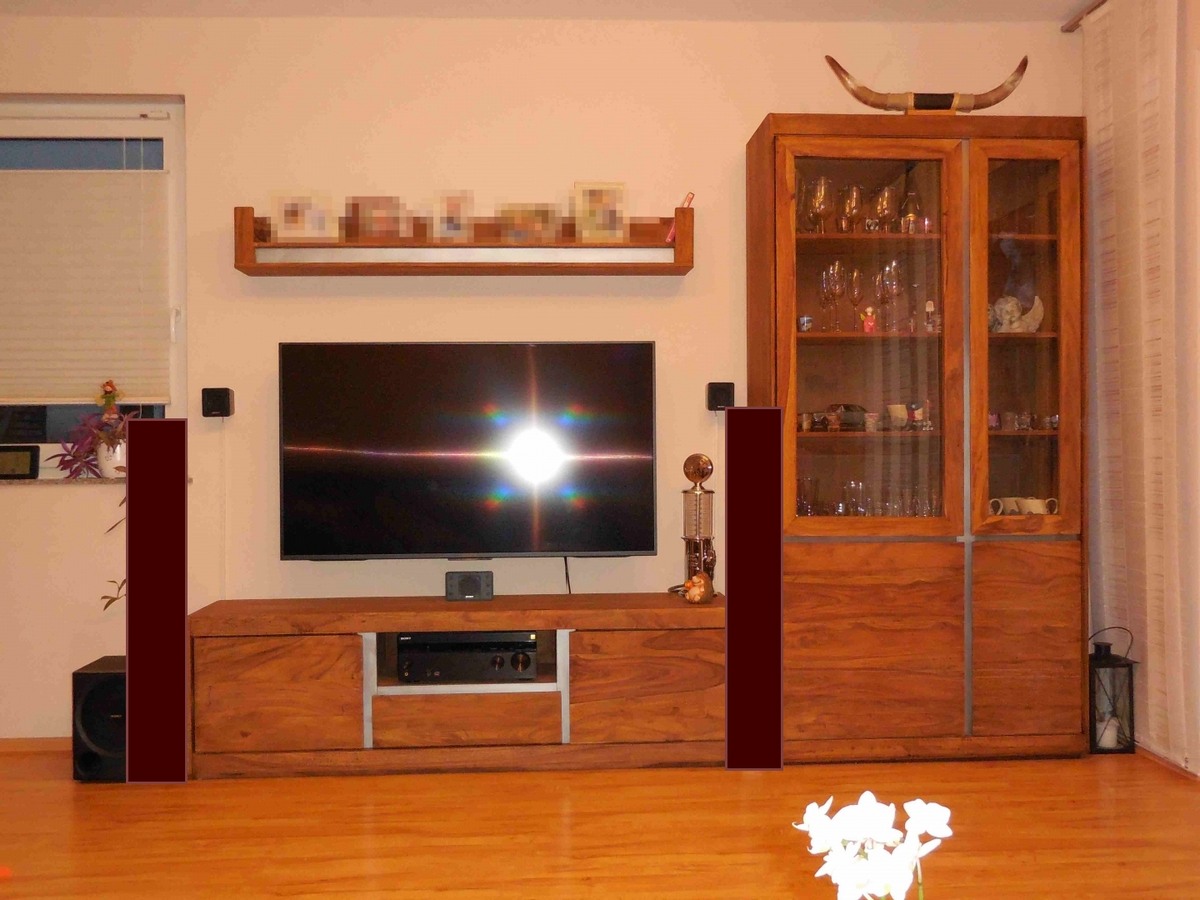 Beabsichtigt ist die Anschaffung eines 5.1 Systems, bestehend aus 4x WS-14 (zum einen WAF, zum anderen steht die Couch hinten nur ca. 40 cm von der Wand weg, mehr ist auch nicht machbar (siehe WAF)), AW-1100 oder -993 (oder reicht evtl. schon der -600?) und einem Center.