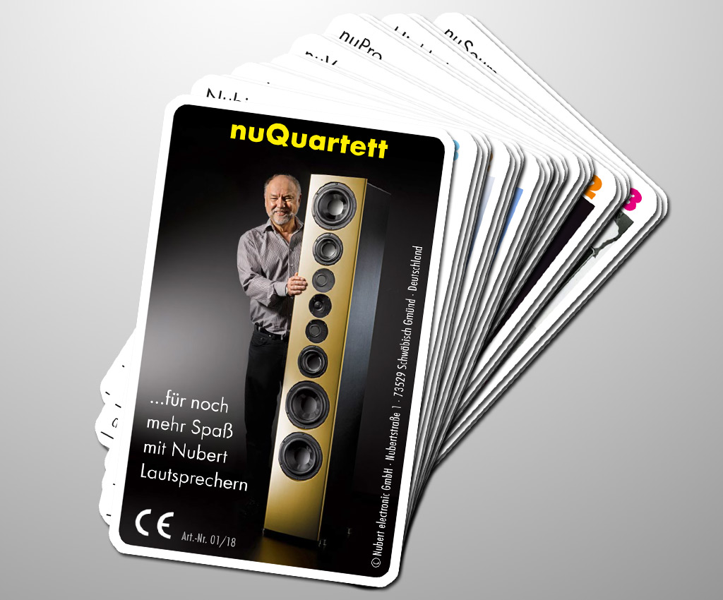 40 Nubert Kartenspiele „nuQuartett“ mit Highlights aus unserer Firmengeschichte