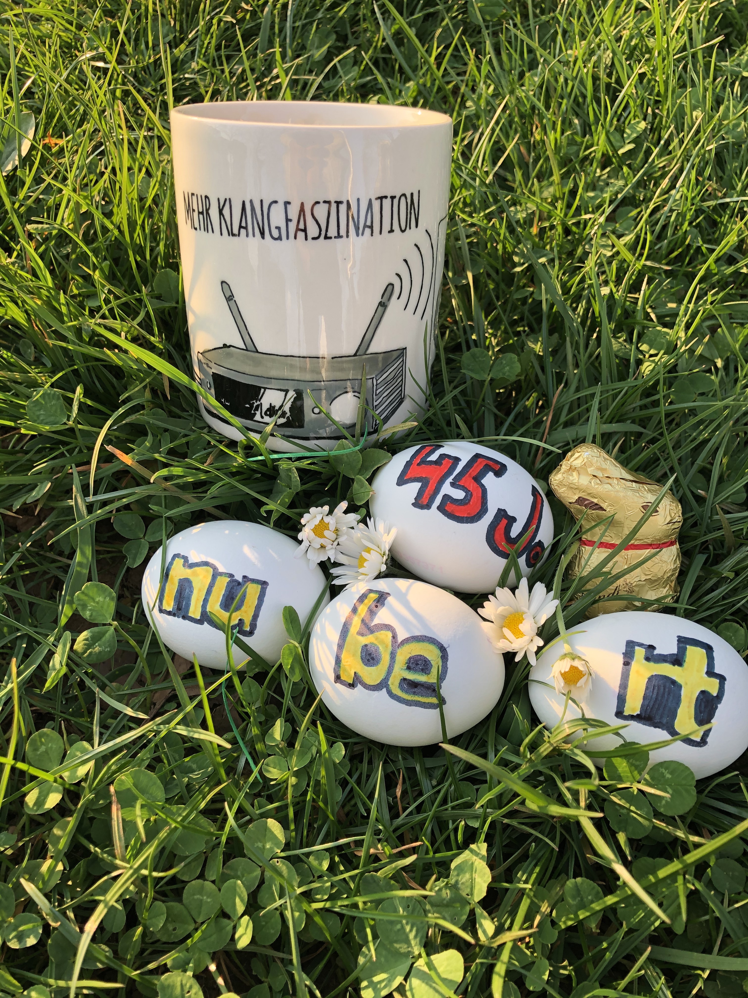 Da hat der Osterhase wohl die Zeitumstellung nicht mitbekommen. Oder Lack gesoffen.