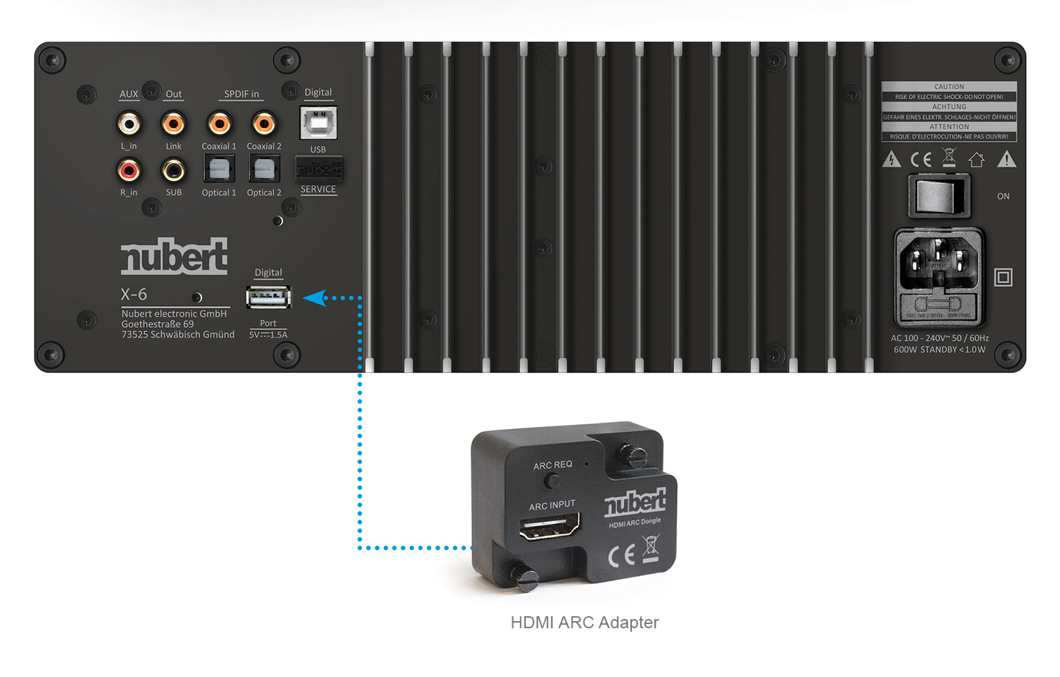 Ich habe dieses in den USB Port (wo vorher der HDMI Adapter angeschlossen war) der Nubert gesteckt.