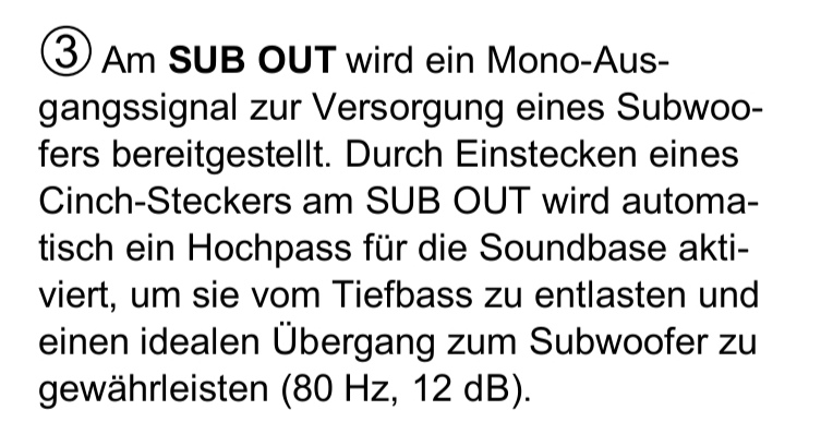 80 Hz gefiltert, sobald ein Cinch-Stecker an der SUB OUT-Buchse
