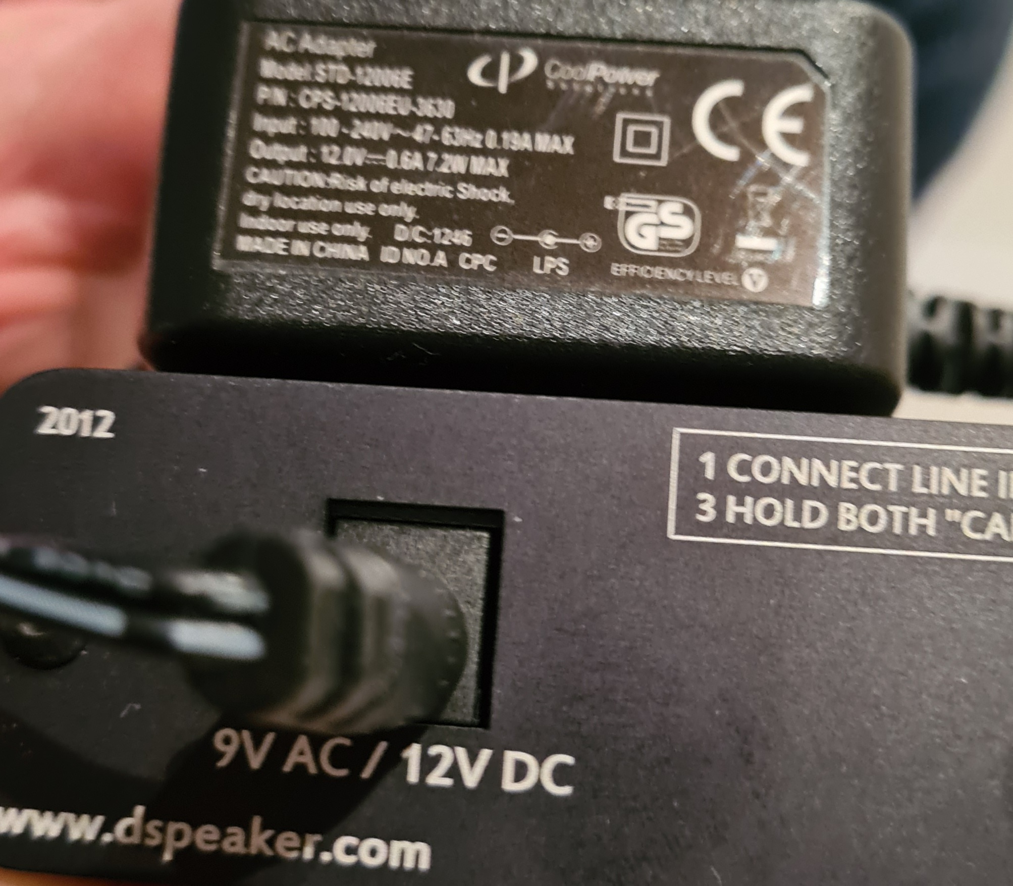 laut dem webstore von dspeaker.com scheint es die ältere Version mit gelber LED zu sein(da größere Bauform vom Netztteil)?! Laut den Fotos dort passt aber Herstellername, Ausgangsspannung und Polarität - die Leistungsaufnahme von 1,2 Watt erfüllt es auch locker.