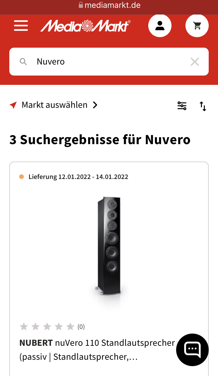 Seit einiger Zeit. Wohlgemerkt: Nubert Produkte sind in den Online-Shops von mediamarkt.de und saturn.de gelistet, aber nicht in den Filialen vorrätig. Der Versand erfolgt bei Bestellung über Media-Saturn wie gewohnt über uns.