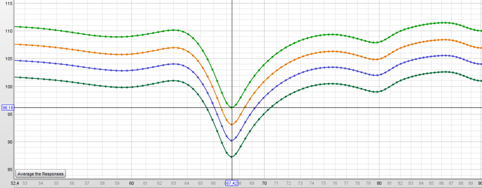 Diese eine Mode bei 67Hz bei mir kann ich durch wirklich nichts auffüllen - egal welche Subwoofer-Position ich wähle, sie ist immer da. Und sie ist ziemlich unabhängig vom Hörplatz. Ich habe mal einen Sinuston laufen lassen und bin durch's Zimmer gestiefelt, überall fast gleich laut. Bei allen anderen Problemfrequenzen konnte ich durch eine bestimmte SUbwoofer-Konfig oder durch Änderung des Hörplatzes Einfluss nehmen. Diese hier ist einfach immer da.