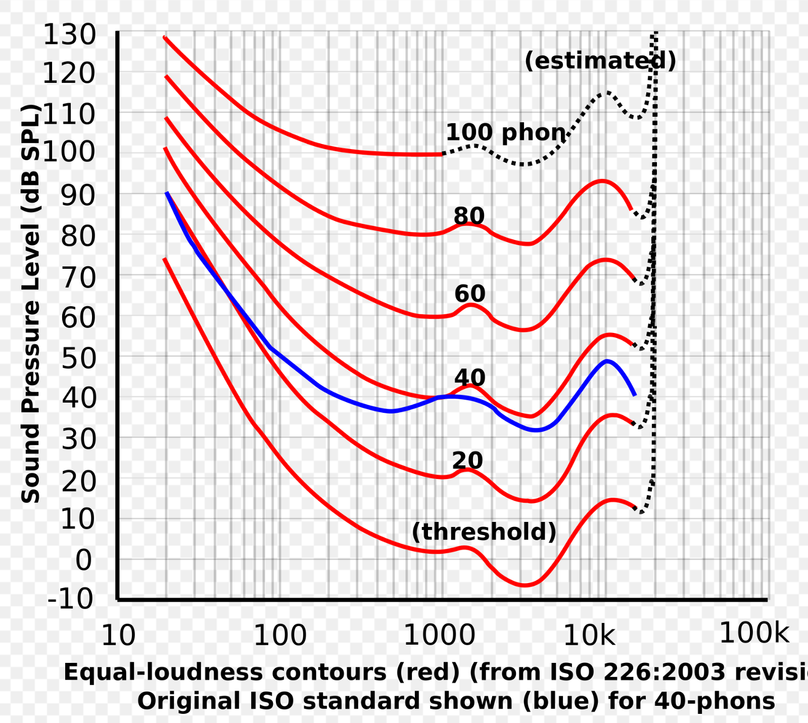 Nach einer Weile sind mir dann wieder die Fletcher Munson Kurven eingefallen. Also ich dann bei Wikipedia nachgeschaut habe, sah ich, dass es ja schon relativ lange eine modernisierte ISO Norm dafür gibt, die sehr interessant aussieht.