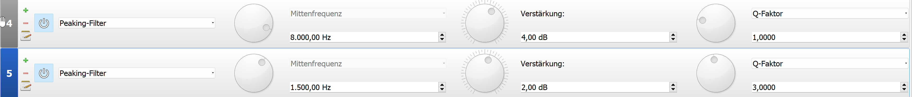 Ursprünglich hatte ich den Dip bei 3 Khz auch drin, aber der hat für ein sehr komisches, hohles Klangbild gesorgt, daher habe ich diesen wieder rausgenommen. Das Endergebnis sieht nun so aus: